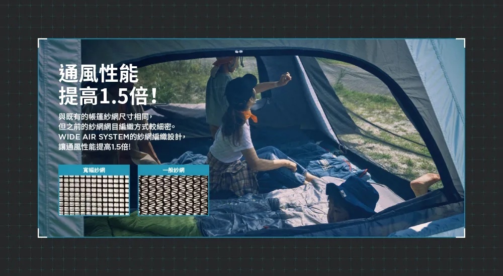 規格:前庭、電線導口、營燈掛勾、紗門、循環透氣、STORM GUARD、網狀置物袋、側邊窗、吊掛式內帳