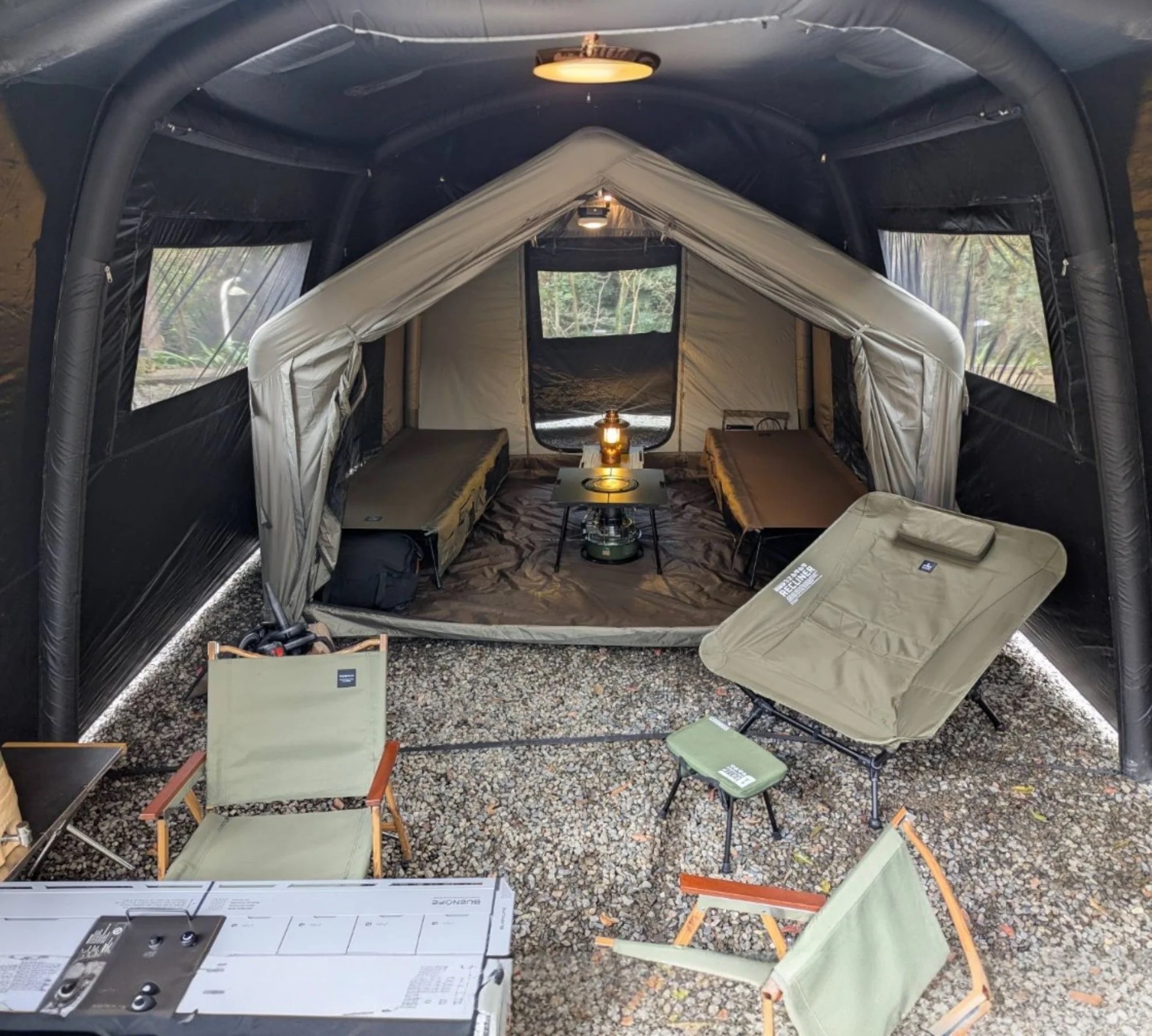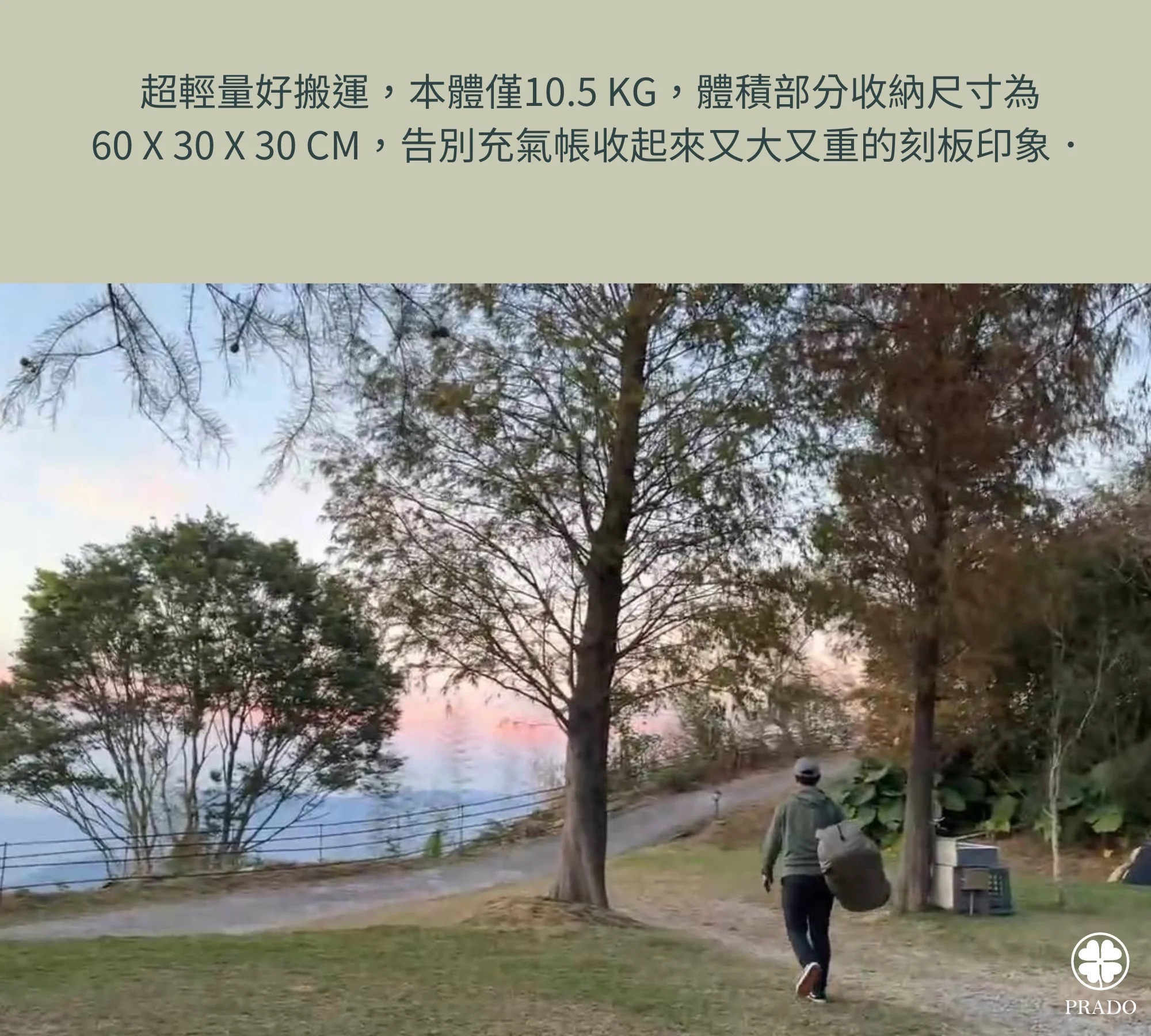 ✨內含:小屋本體*1、收納袋*1、營釘*16、營繩*8、營錘*1、地墊*1、手打打氣筒*1