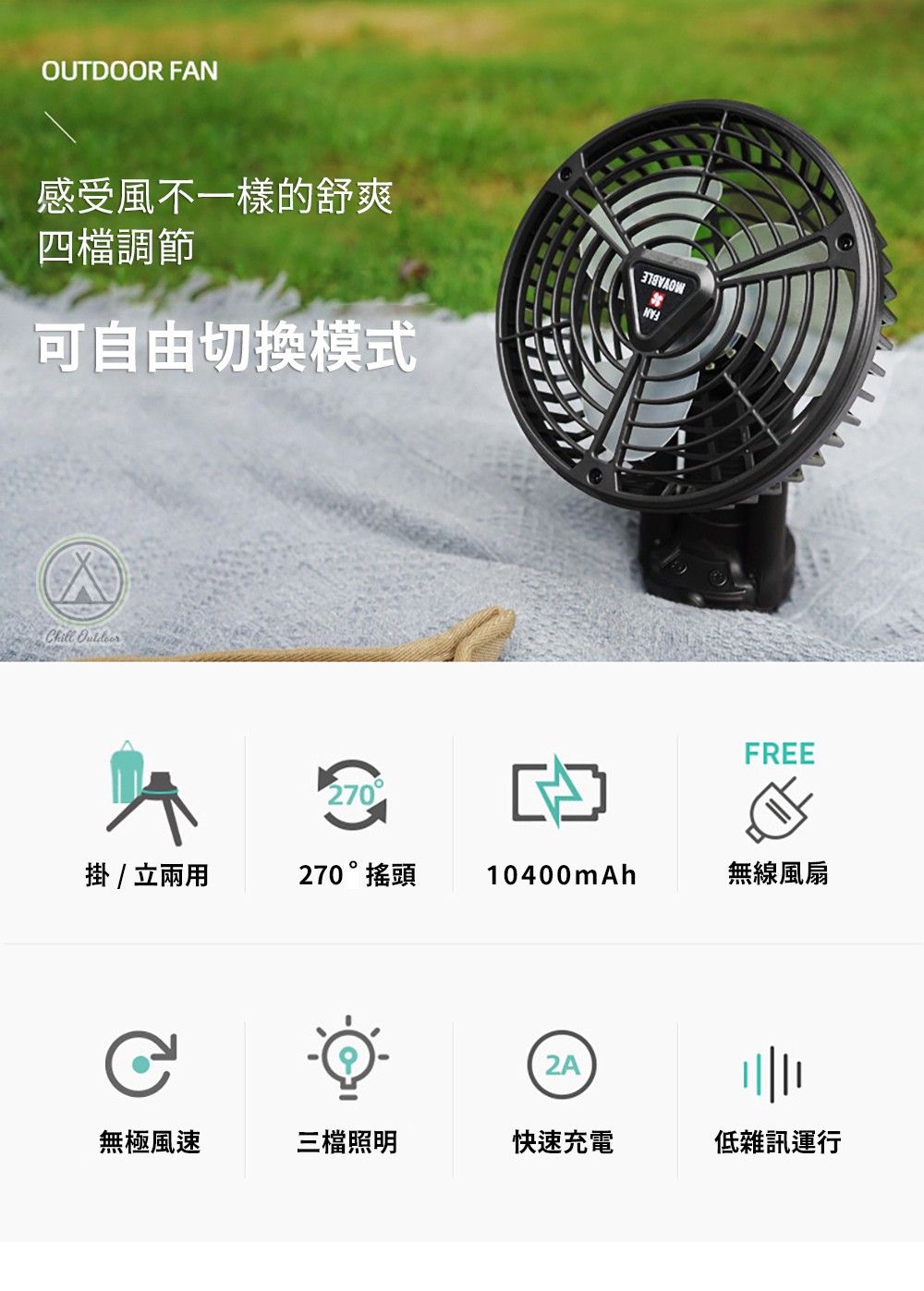 ✔自動擺頭風扇,可吊掛