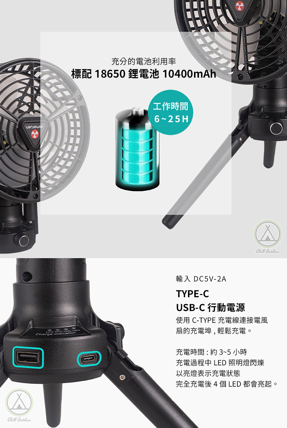 ✔燈光三段可調,風力四段可調,腳架可收折