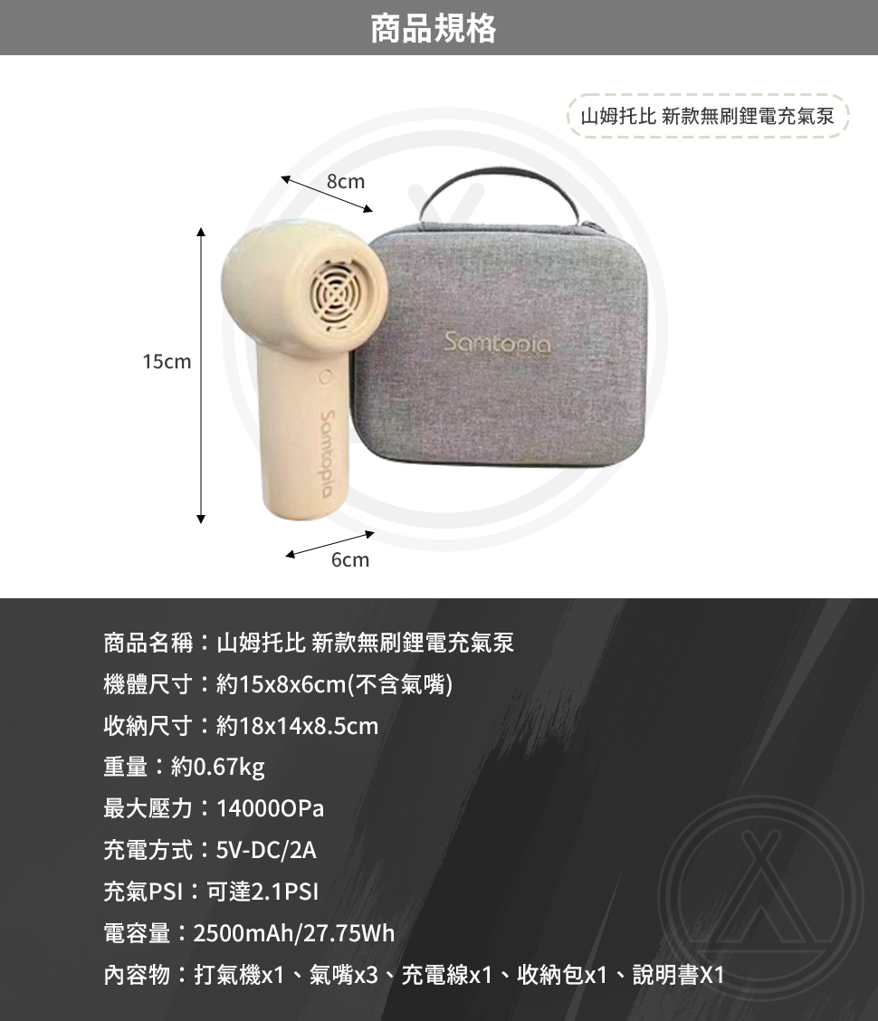 ⭐️ 強勁充氣效能,最高 2.1 PSI