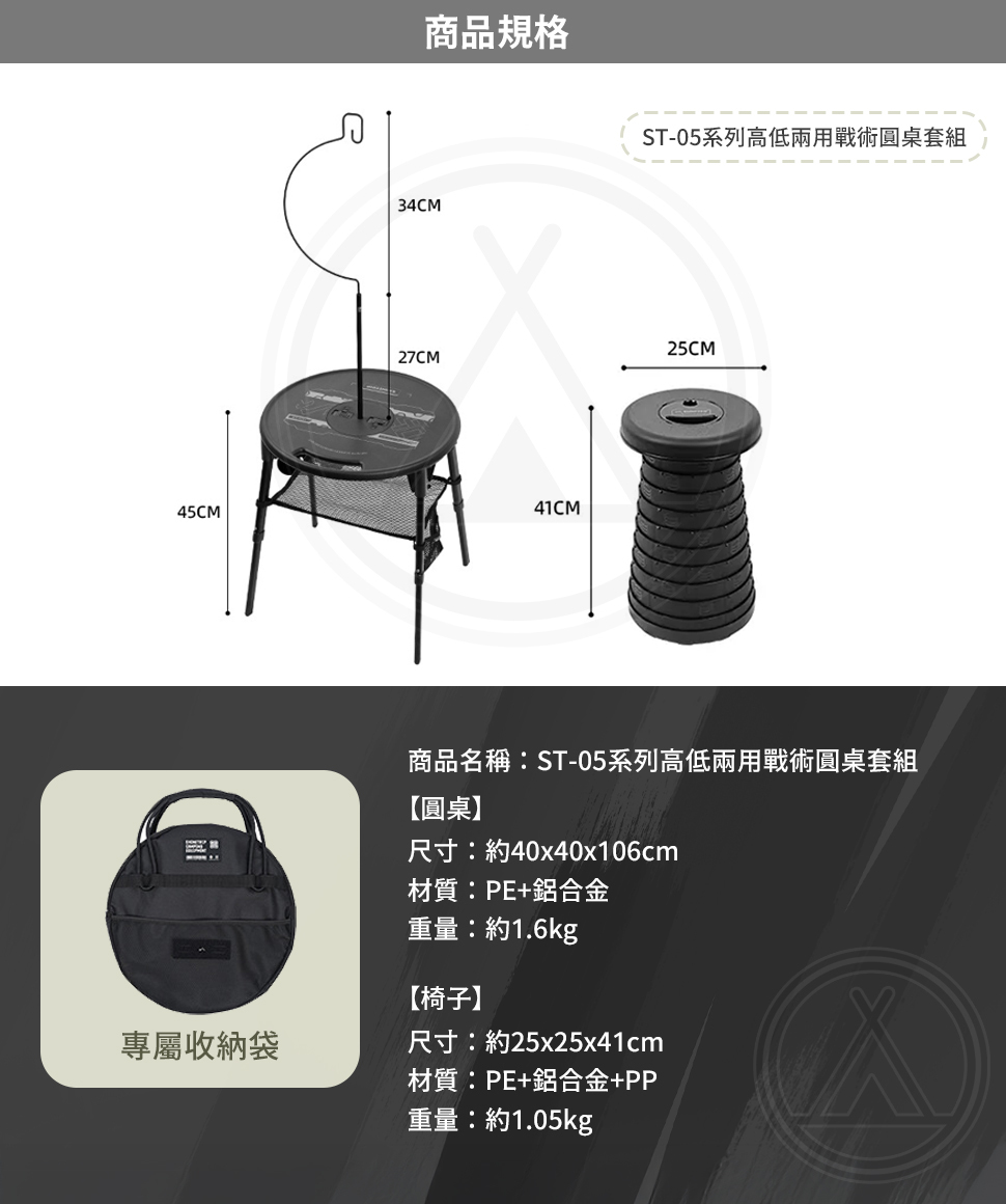【商品規格】商品名稱:ST-05系列高低兩用戰術圓桌套組�