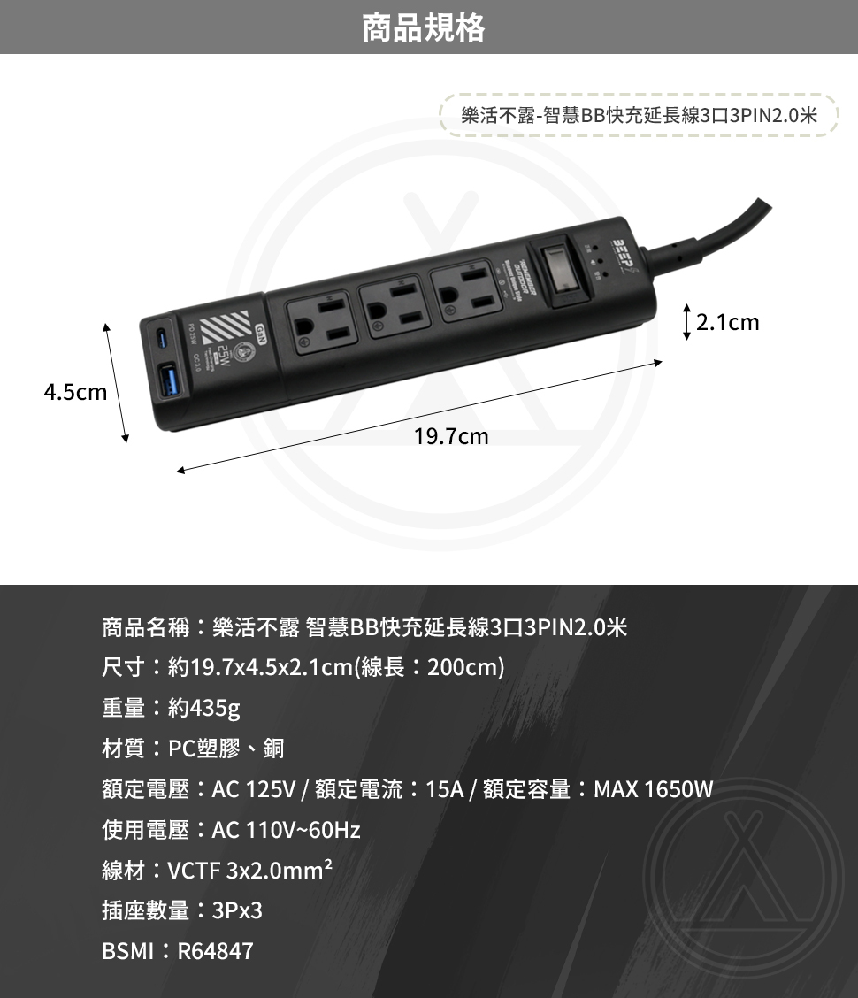 尺寸:約19.7x4.5x2.1cm(線長:200cm)