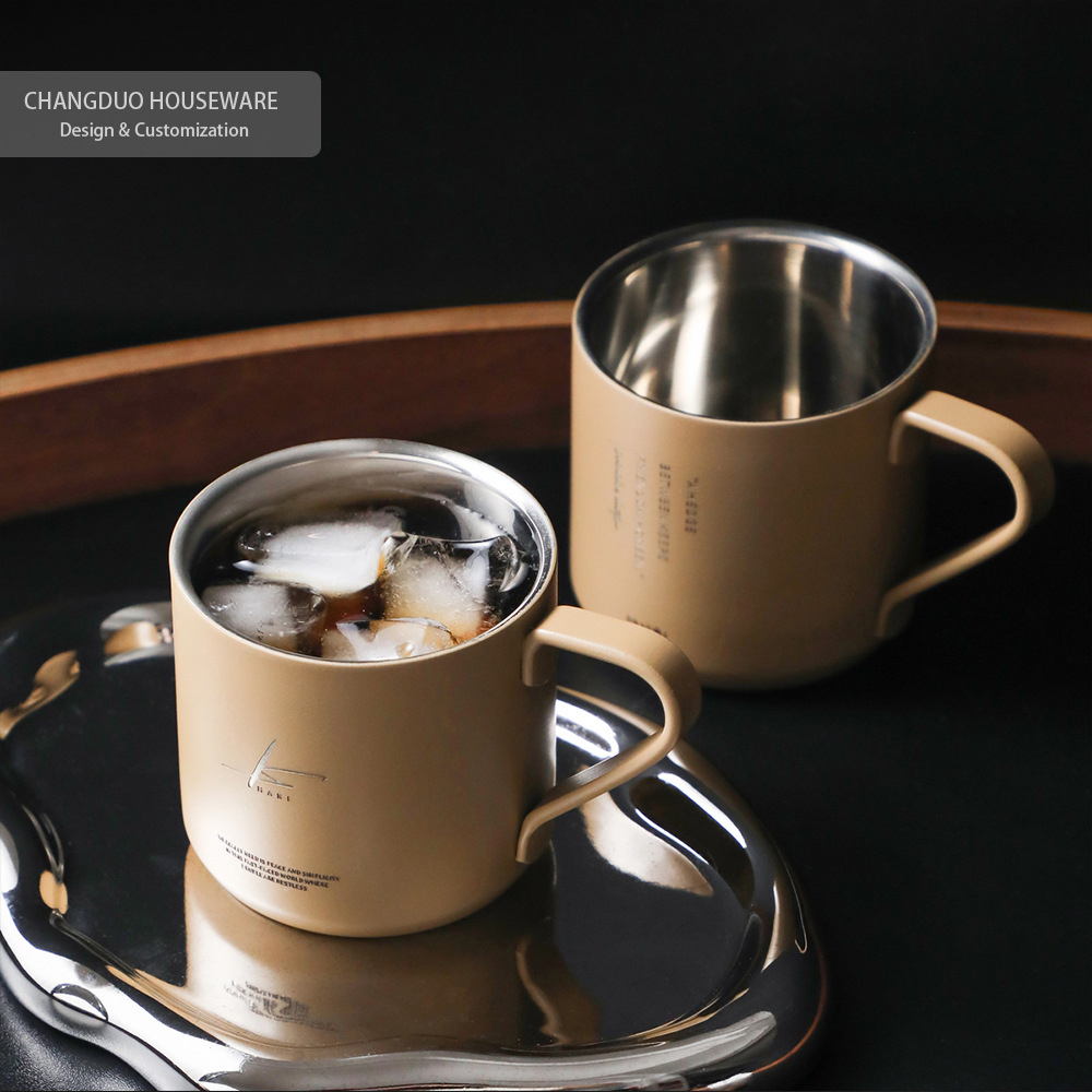🔸輕奢質感沙色304不鏽鋼雙層杯