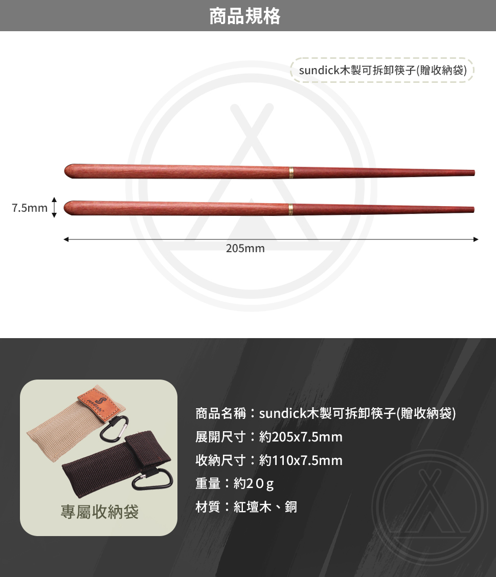 Sundick 木製可拆卸筷子(贈收納袋)