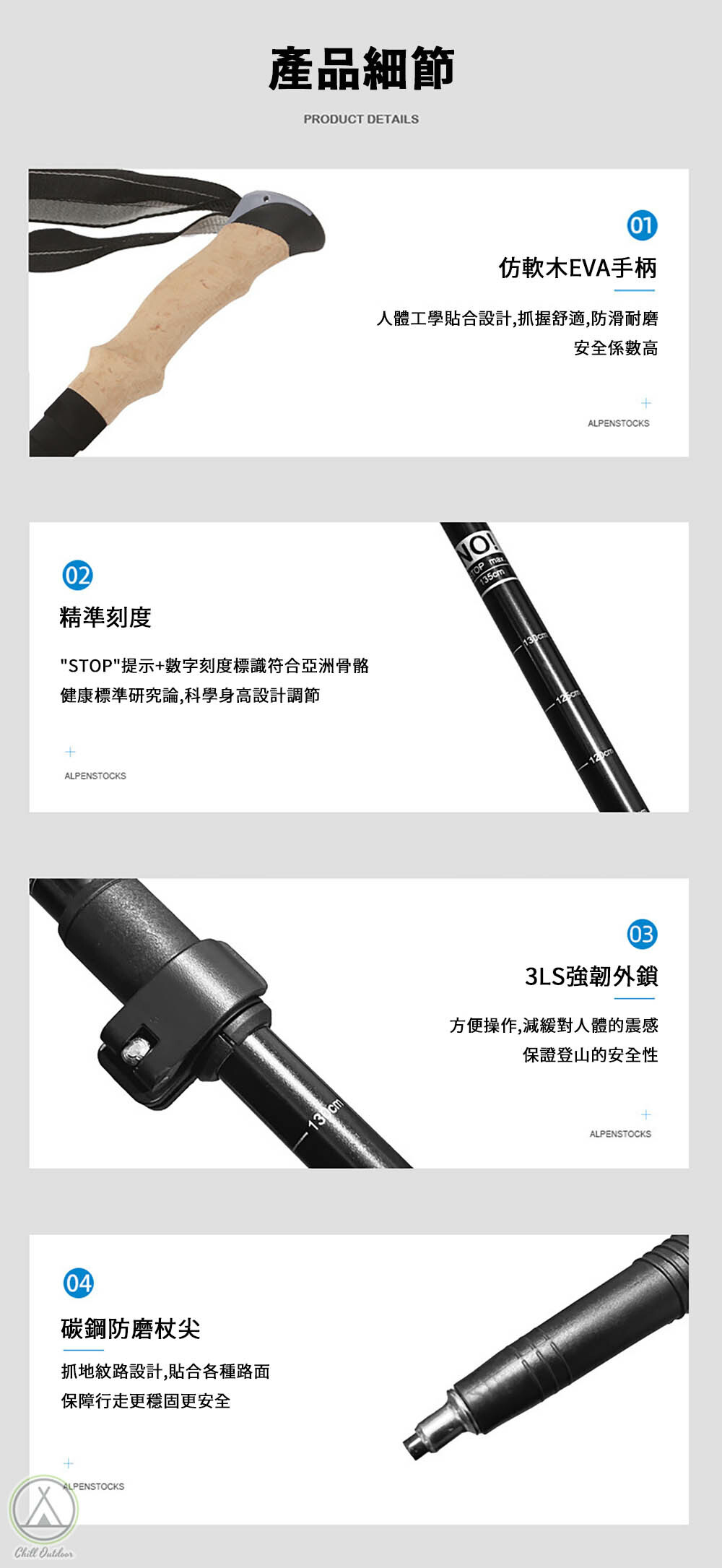 ✔ 碳鋼防磨杖尖 穩固安全