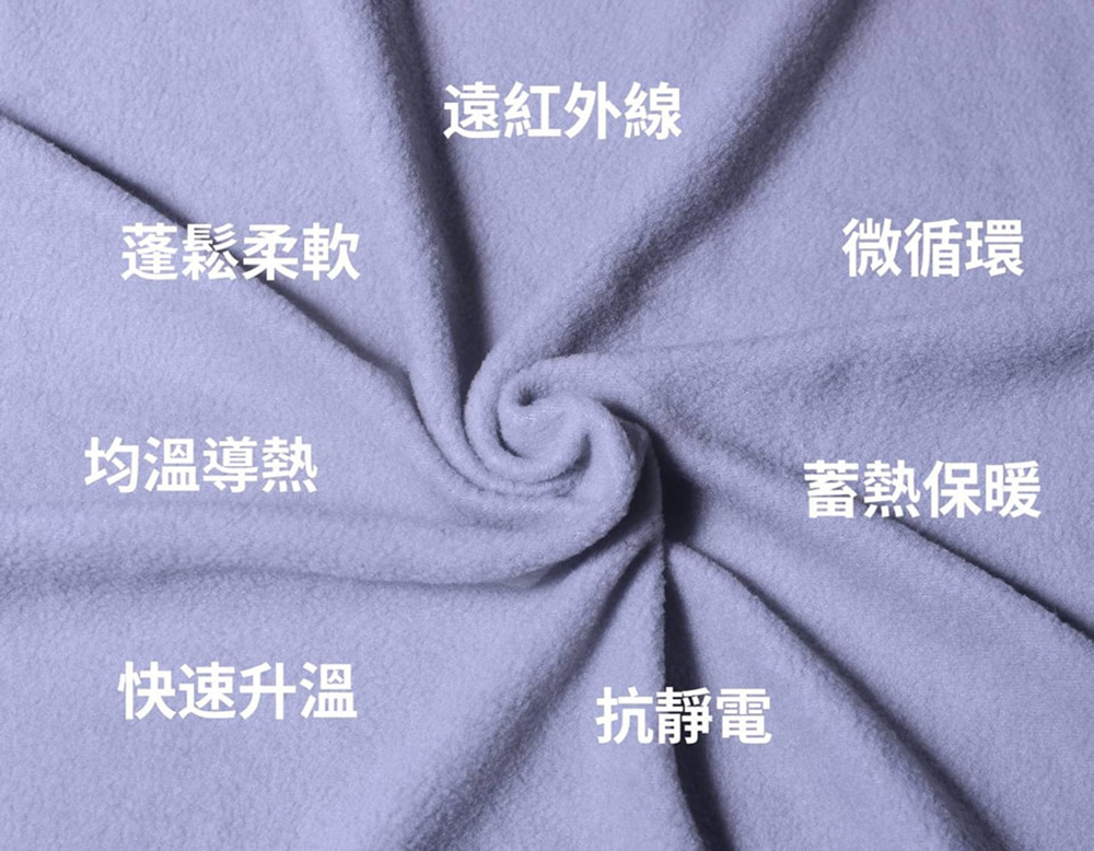 ✔搭配特殊織、刷絨技術、後加工等。達到速熱保溫、親膚,及無冰冷感的觸感
