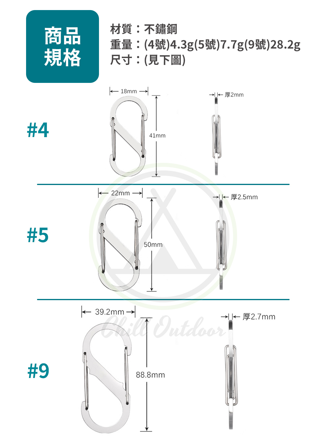 不鏽鋼S型扣 登山扣-(銀/黑)