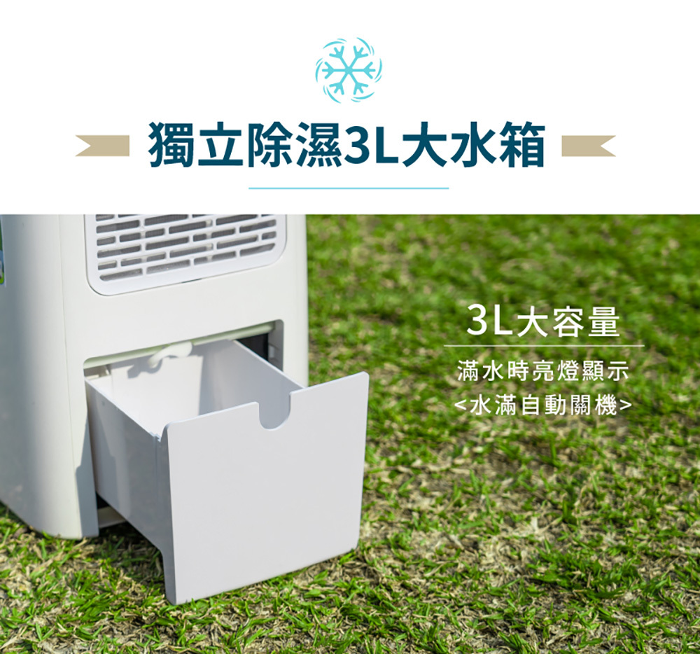 ✔ 獨立除溼| 3L 大水箱 滿水亮燈警示&自動關機