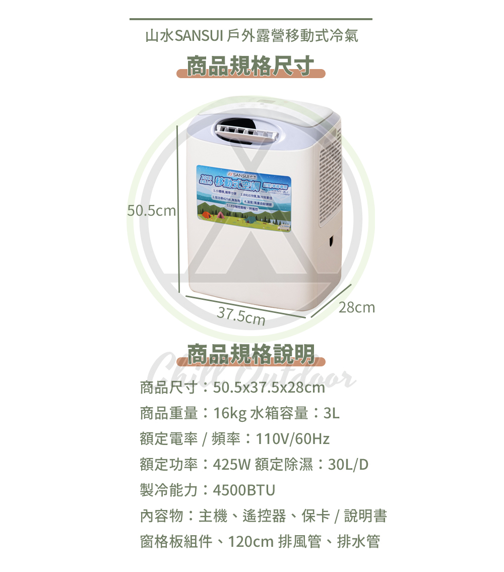配件:主機、遙控器、保卡、說明書、前風罩、1.2M排風管、後熱風銜接口