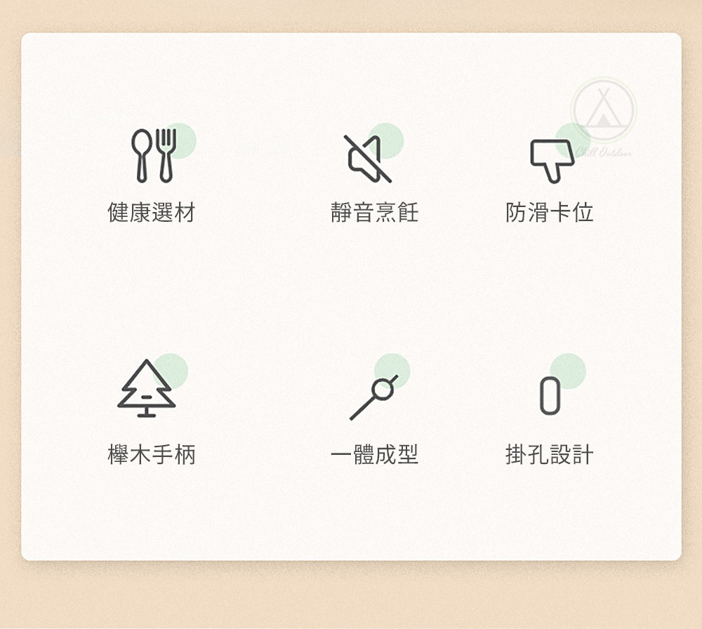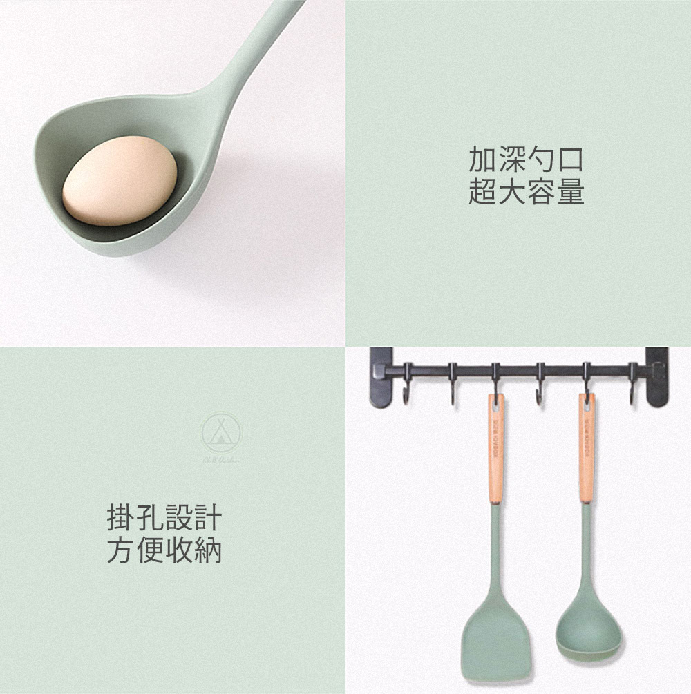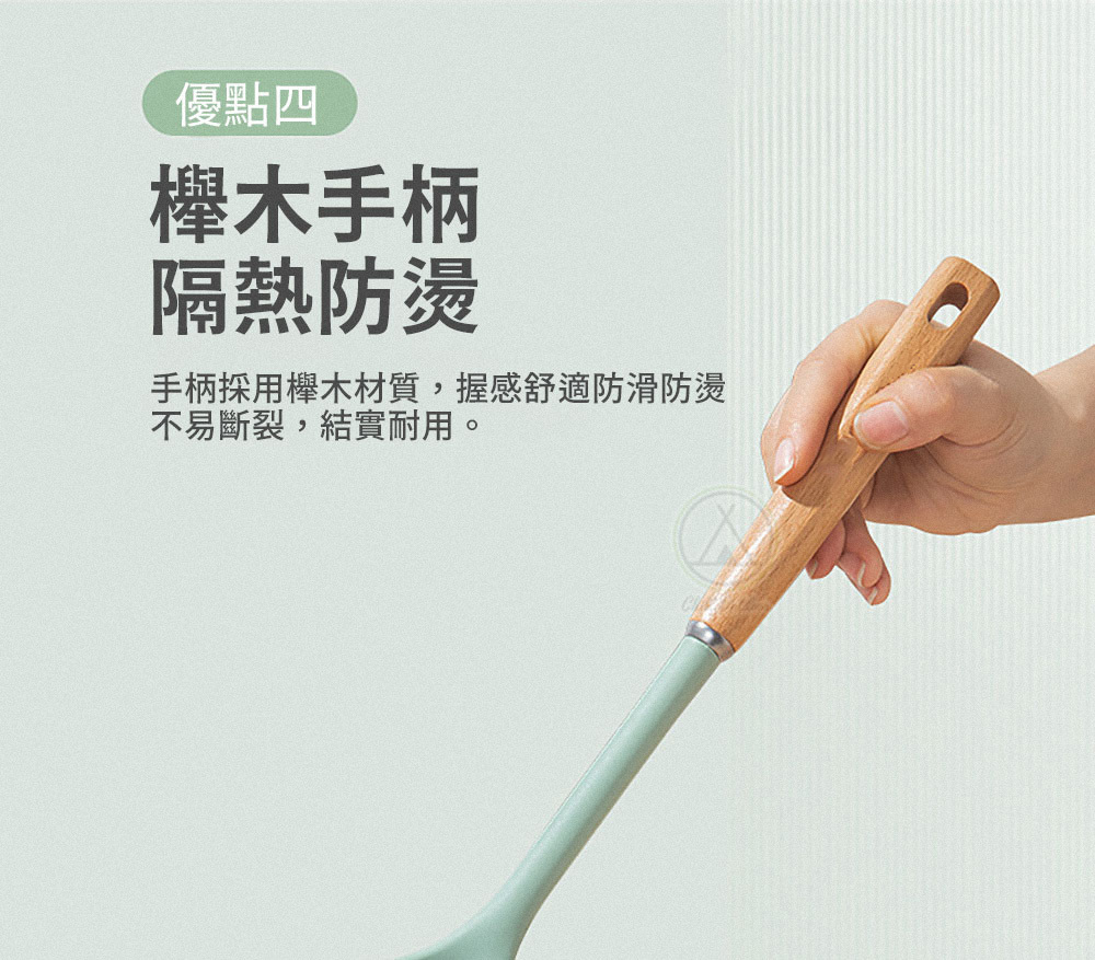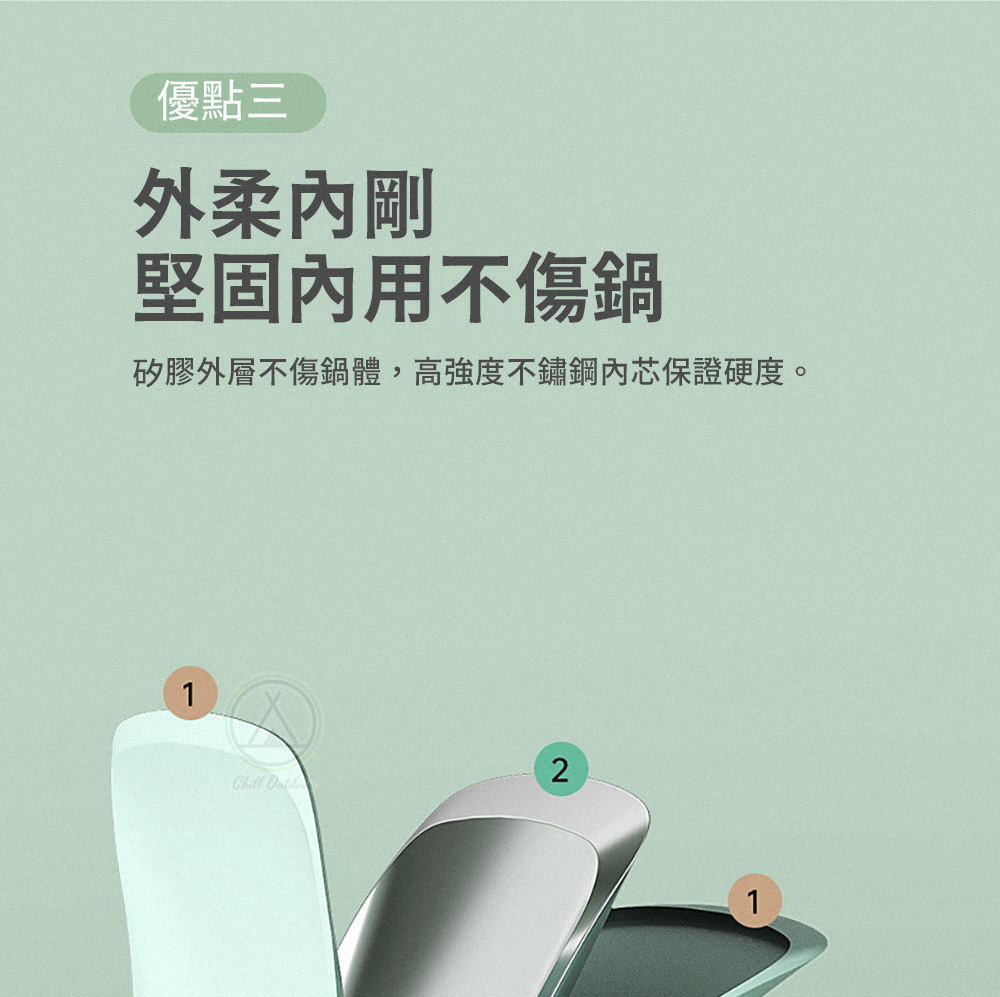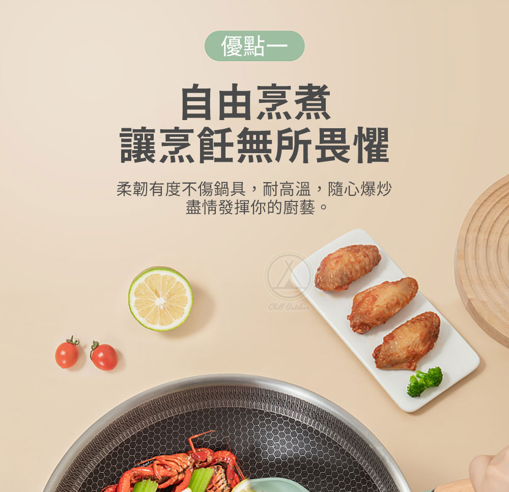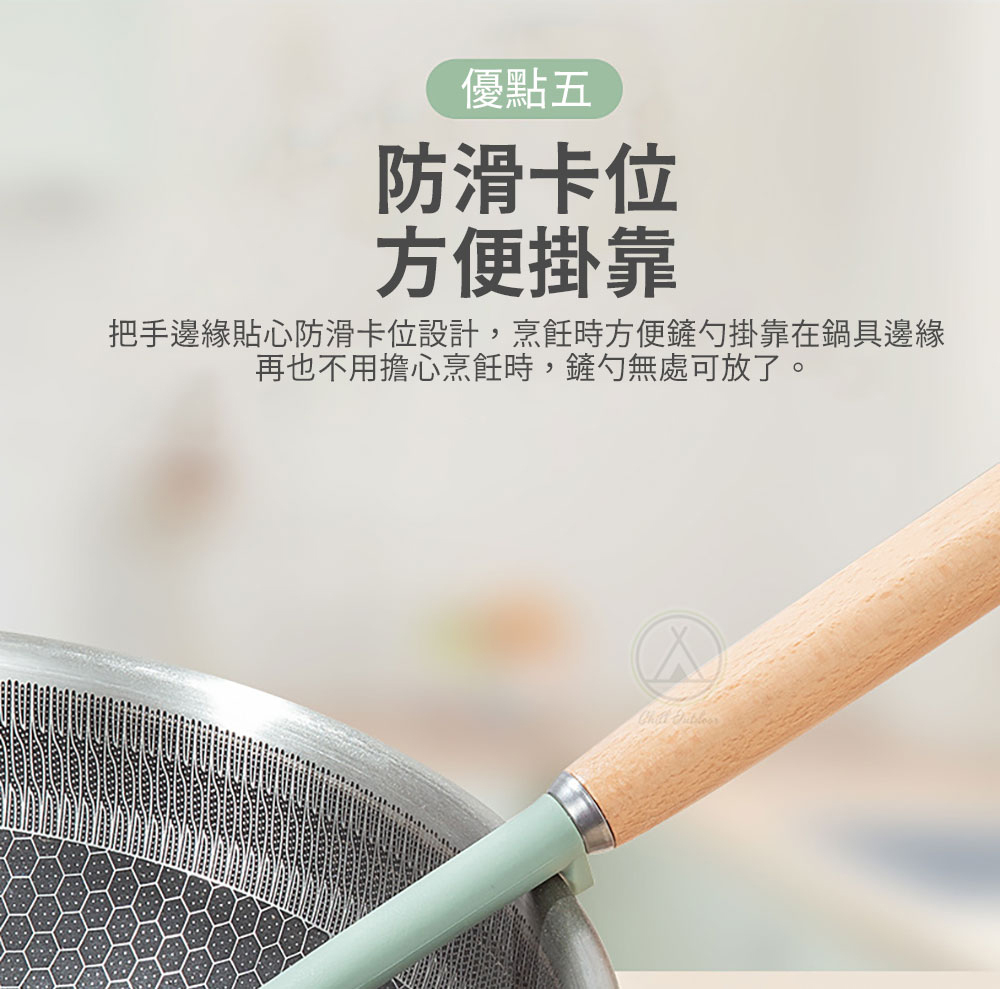 ✔把手邊緣卡位設計,鏟勺不易滑落鍋裡