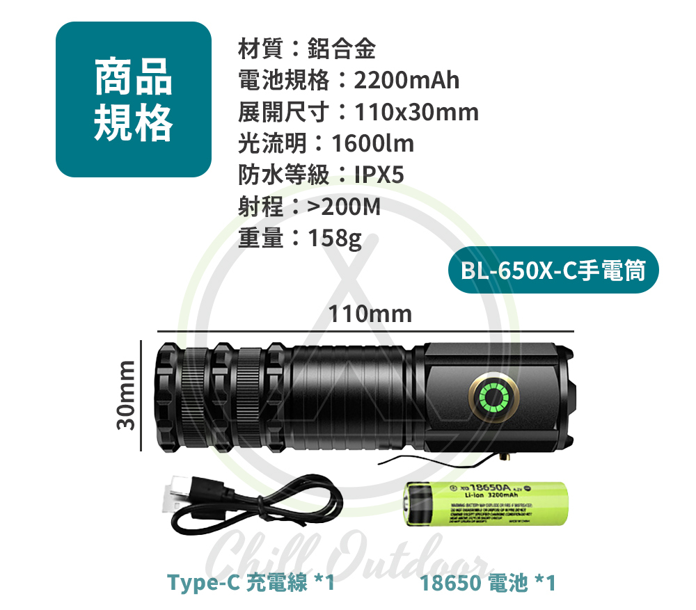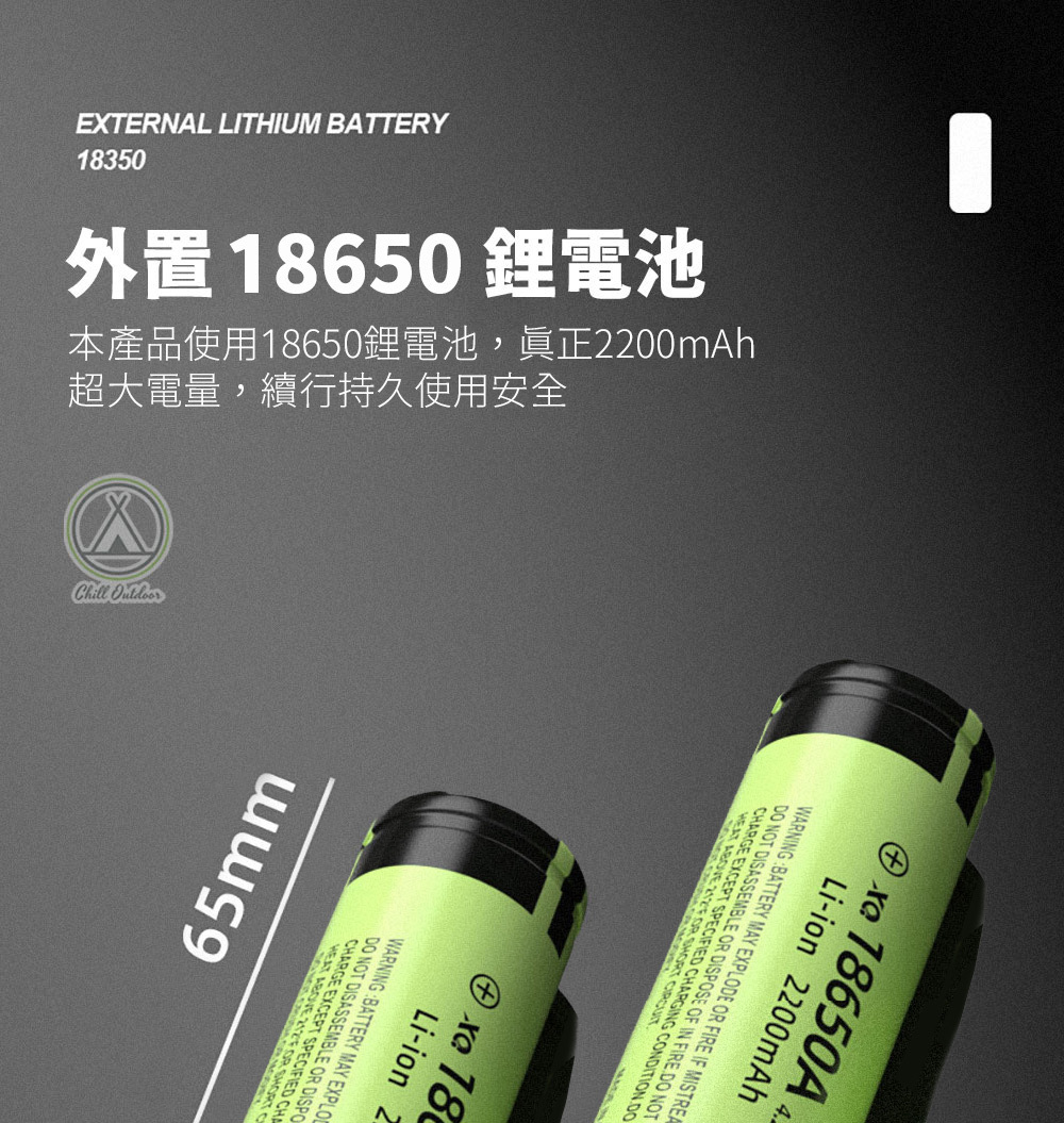 ✔ 內置18650鋰電池,擁有2200mAh超大電量