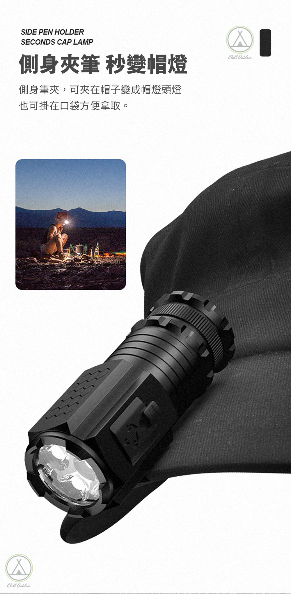 ✔側身筆夾設計,秒變行動帽燈