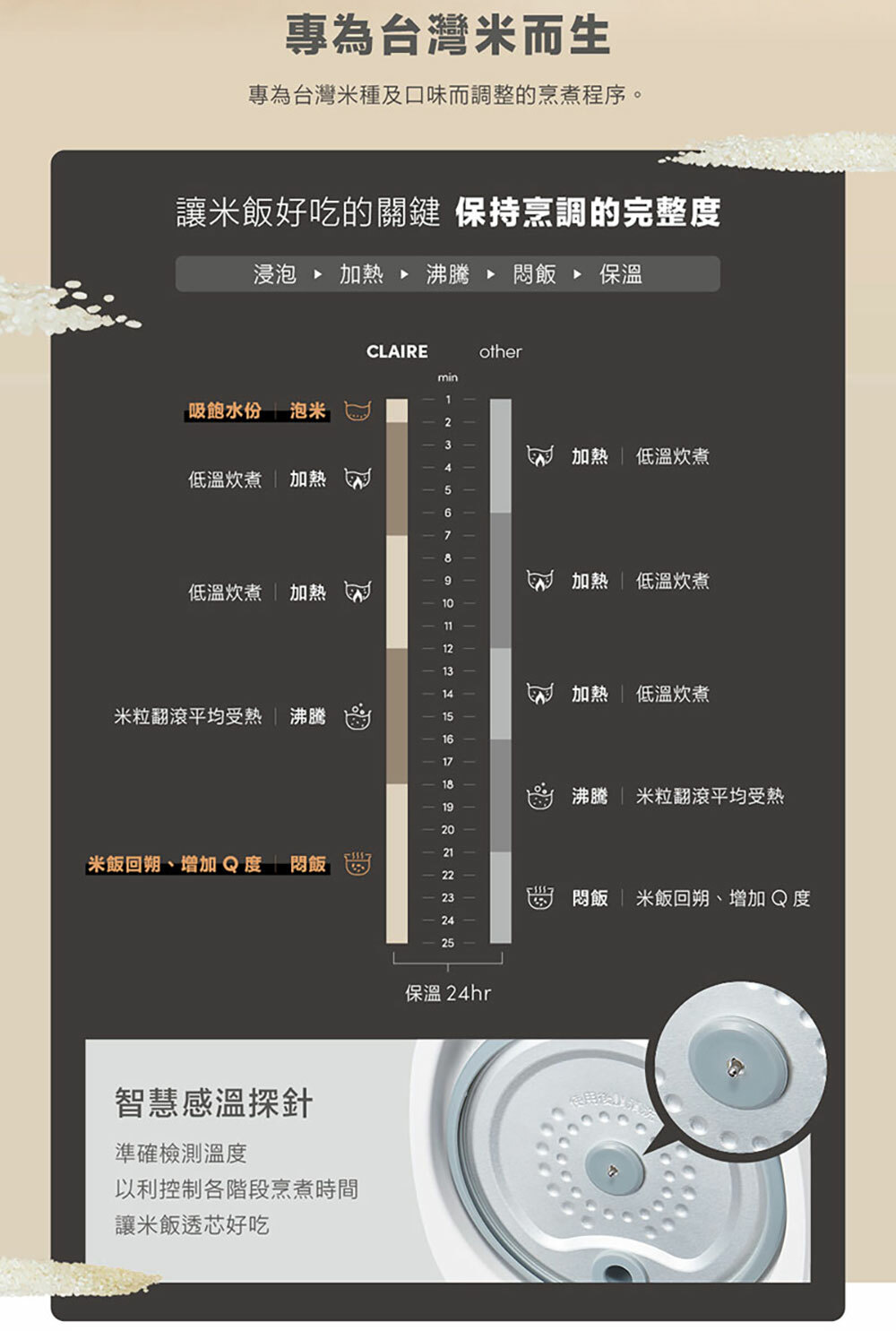 ✔智慧感溫,控制各階段烹煮時間