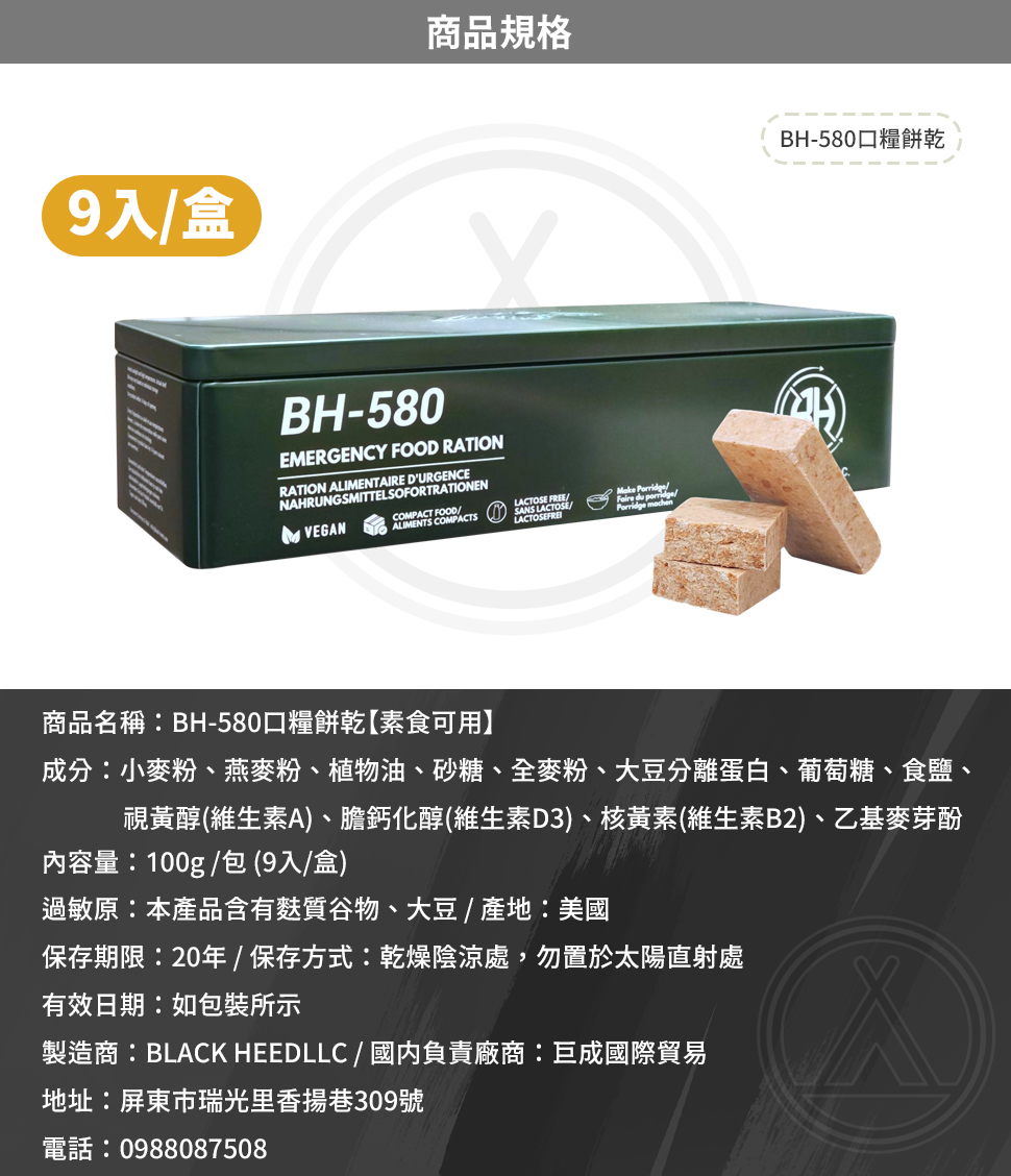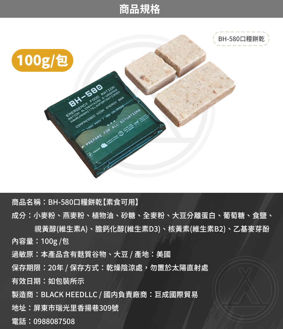 品名:BH-580口糧餅乾(素食可用)