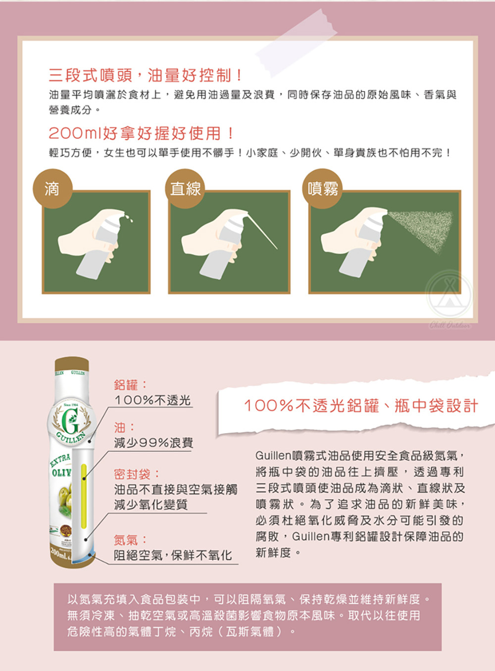 ✔使用安全食品級氮氣,保持油品新鮮度