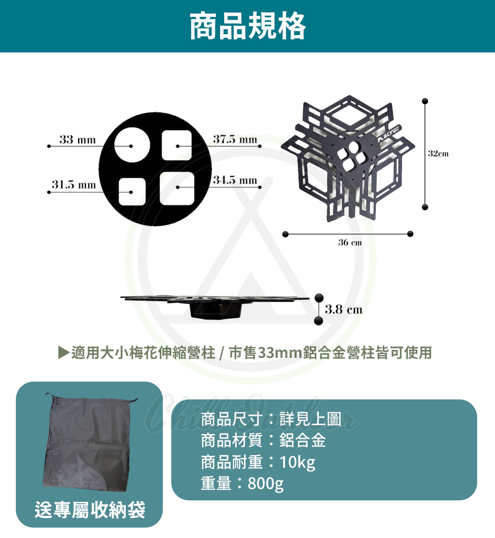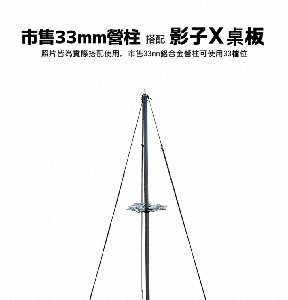 ✔專利結構:梅花營柱或市面33mm鋁合金營柱,與之結合完美,猶如影子般貼合,既是穩固的支持,也是帥性的裝飾。