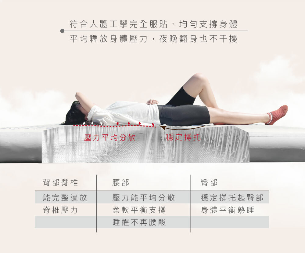 符合人體工學完全服貼、均勻支撐身體