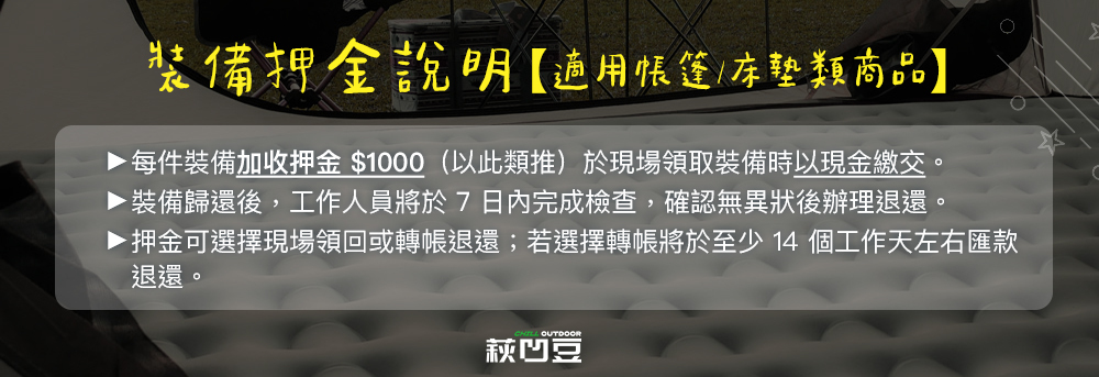 租借包含配件:單人帳本體x1、支架x2、外頂帳x1 可拆式圍布x2、營釘x6、營繩x4
