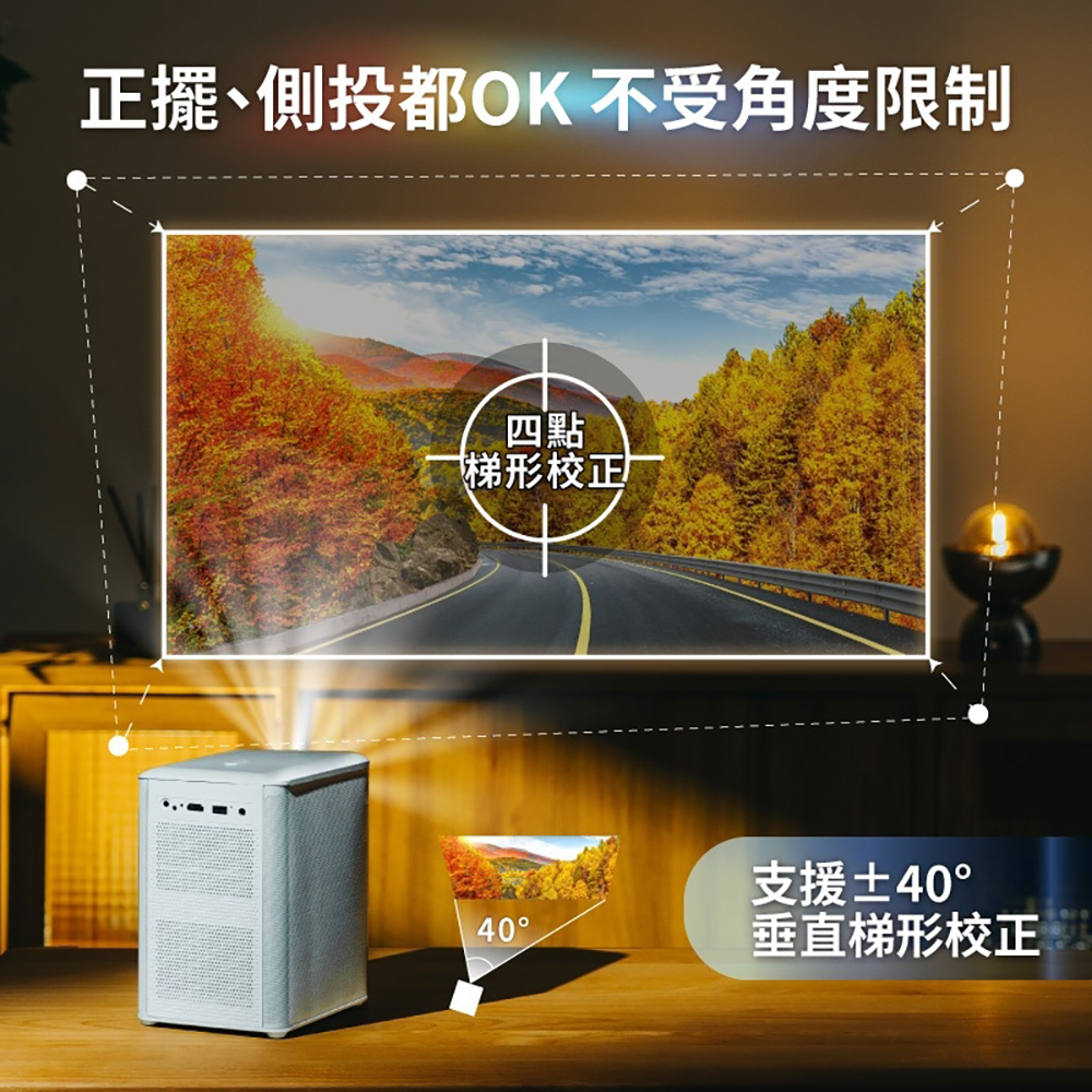✔ 自動對焦&梯形校正,左右垂直達45度,正擺側擺都OK