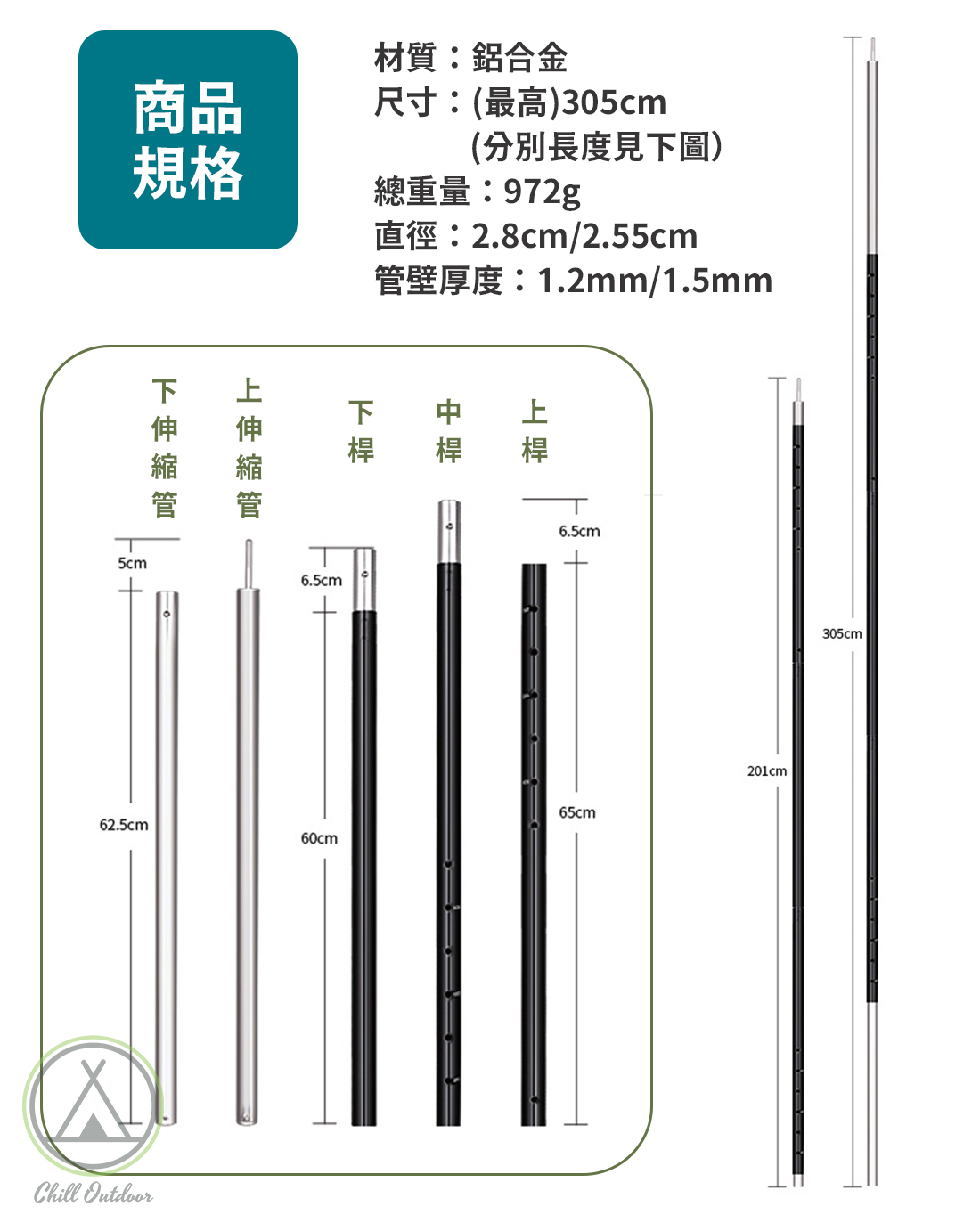 ShineTrip 鋁合金雙向伸縮營柱 305cm(單支)