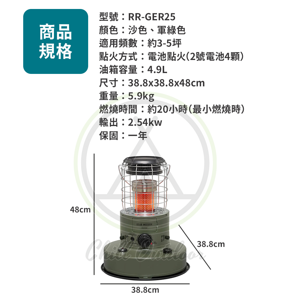 TOYOTOMI 煤油暖爐 RR-GER25 (沙棕/橄欖綠)